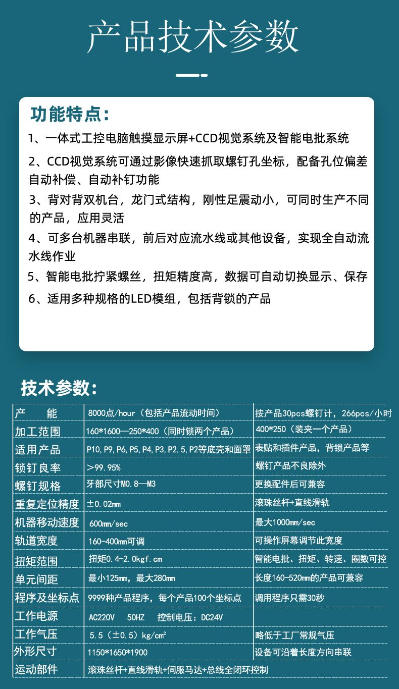 1、可配合自動(dòng)流水線通過坐標(biāo)或機(jī)械手自動(dòng)定位,自動(dòng)鎖付2、可實(shí)現(xiàn)多機(jī)臺(tái)聯(lián)機(jī)組合工作,實(shí)現(xiàn)無人自動(dòng)化生產(chǎn)