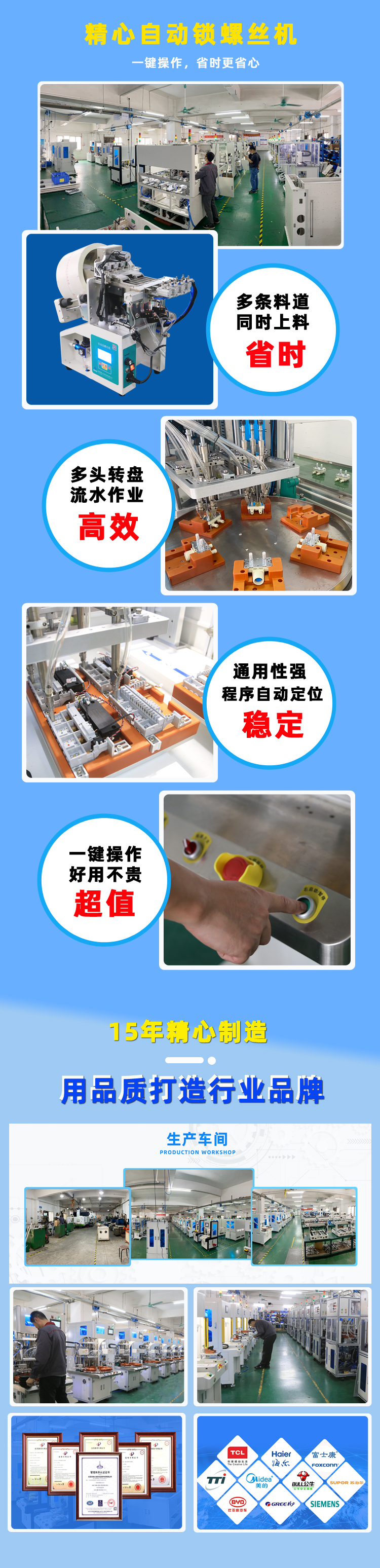 精心科技機(jī)械手在線式全自動(dòng)鎖螺絲機(jī)具有模塊化,集成快,調(diào)試方便,速度快,鎖附穩(wěn)定等特點(diǎn),幫助企業(yè)實(shí)現(xiàn)高效、智能自動(dòng)化生產(chǎn)。