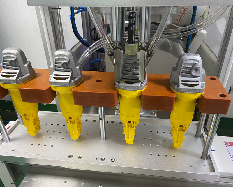 精心科技根據(jù)客戶的使用要求,制定了多頭左右滑臺(tái)電動(dòng)工具鎖螺絲機(jī)。它可以同時(shí)鎖附多顆產(chǎn)品螺絲,以左右滑動(dòng)的方式進(jìn)行上下料,效率更高效穩(wěn)定。